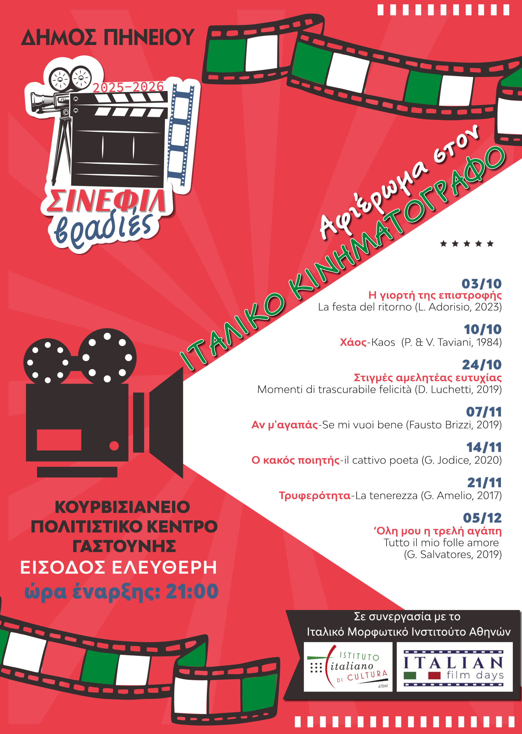 Η Έβδομη Τέχνη επιστρέφει στον Δήμο Πηνειού με τις «Σινεφίλ Βραδιές 2025-2026»