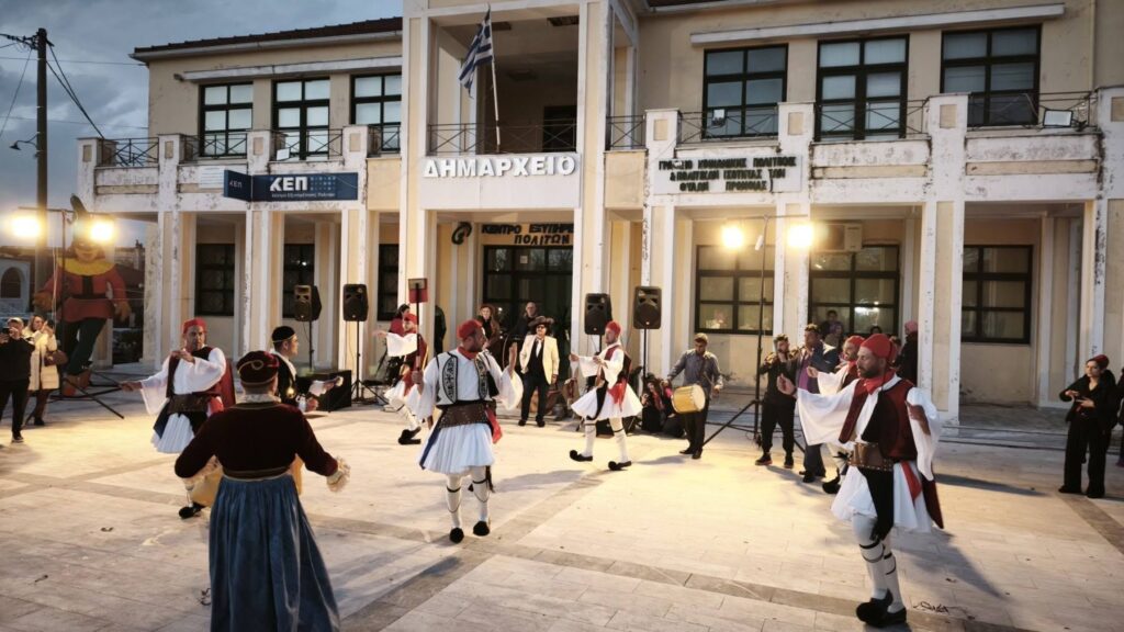 Ιδιαίτερο χρώμα στη βραδιά έδωσαν οι παραδοσιακοί χοροί, οι οποίοι παρουσιάστηκαν σε καθαρά αποκριάτικο κλίμα, συνδυάζοντας τη λαογραφική ταυτότητα του τόπου με πειράγματα, ζωντάνια και εύθυμη διάθεση που ταίριαζε απόλυτα στο πνεύμα των ημερών.