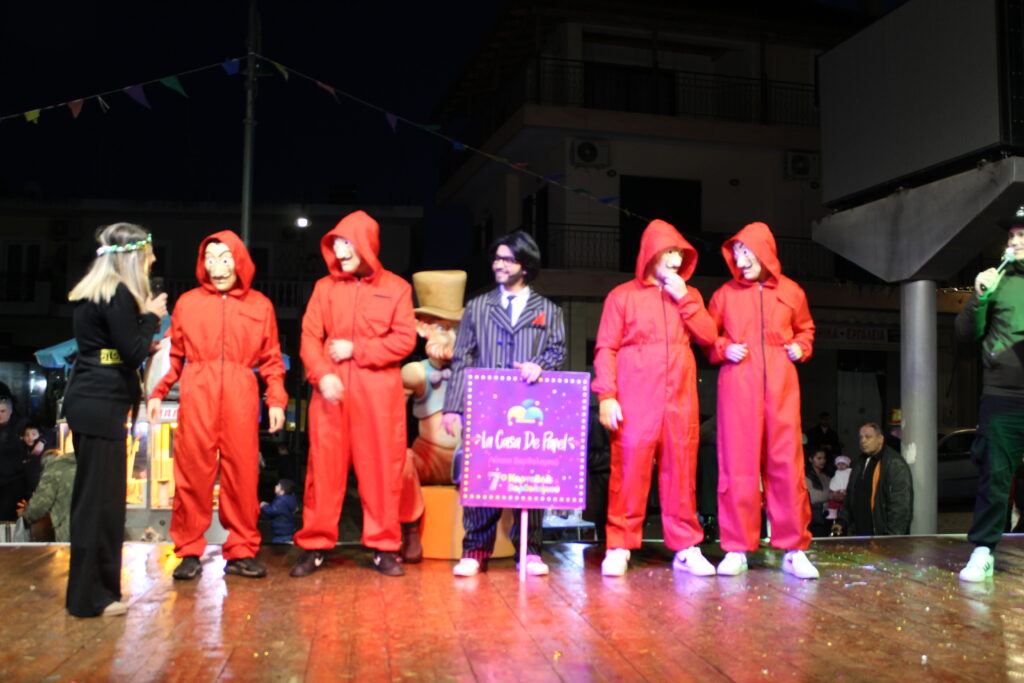 Οι παρουσιαστές της βραδιάς, με χιούμορ και αυθορμητισμό, παρουσίασαν τις ομάδες που θα παρελάσουν την Κυριακή των Αποκριών, δίνοντας μια πρώτη «γεύση» από τη φαντασία και τη δημιουργικότητα που θα ακολουθήσει. Παιδικά χαμόγελα, ευφάνταστες στολές και ρυθμικές χορογραφίες συνέθεσαν ένα σκηνικό γεμάτο αισιοδοξία.