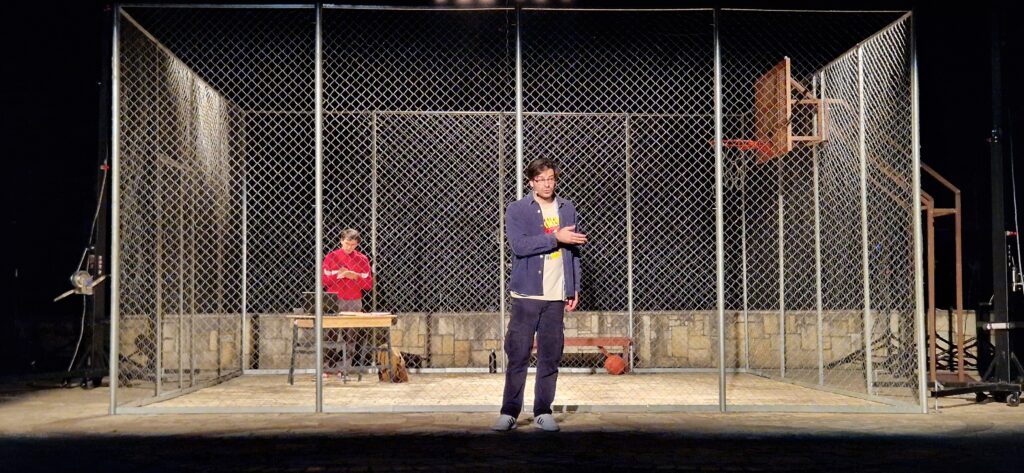 Το έργο, διασκευάζει με λεπτότητα και συναισθηματική ακρίβεια την ιστορία ενός πατροκτόνου, ο οποίος γνωρίζεται με έναν θεατρικό συγγραφέα στη φυλακή μέσα σε ένα γήπεδο μπάσκετ. Η αφήγηση δεν εγκλωβίζεται στο αδίκημα· το διαπερνά αντλώντας δύναμη από τη σύγκρουση και τη σύνδεση των δύο ανδρών που προέρχονται από εντελώς διαφορετικούς κόσμους. Η μεταξύ τους σχέση εξελίσσεται σε ένα λεπτεπίλεπτο και πολυδιάστατο ψυχολογικό παιχνίδι εξουσίας, συναισθημάτων, επιρροής και αλληλοκατανόησης. Η «Άλλη Θήβα» δεν είναι απλώς μια σύγχρονη τραγωδία: είναι μία φιλοσοφική σπουδή στην ταυτότητα, τη διαφορετικότητα, τη συγχώρεση, τη βία, την έμπνευση και, εν τέλει, -λειτουργώντας αυτοαναφορικά – την ίδια τη θεατρική πράξη ως κάθαρση.